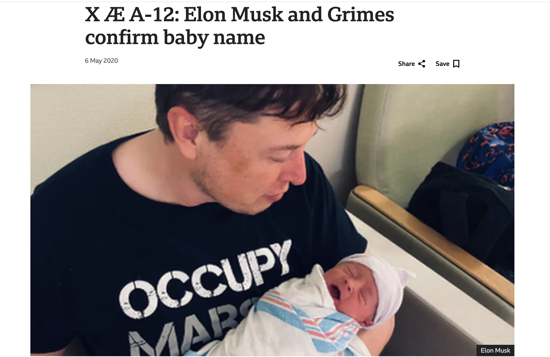 甚至,他给自己最宠爱的儿子取名 X Æ A-12,在日常生活中,他只叫他“Little X”。