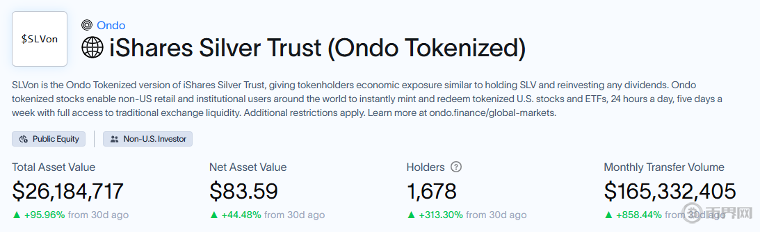 iShares Silver Trust(Ondo代币化)概览,来源rwa,xyz