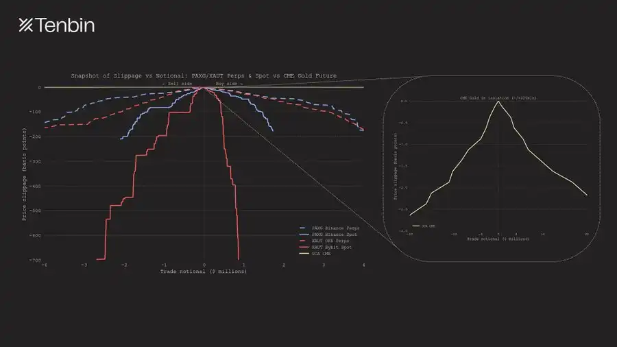 PAXG / XAUT 永续与现货 vs CME 可交割黄金期货:交易规模与滑点
