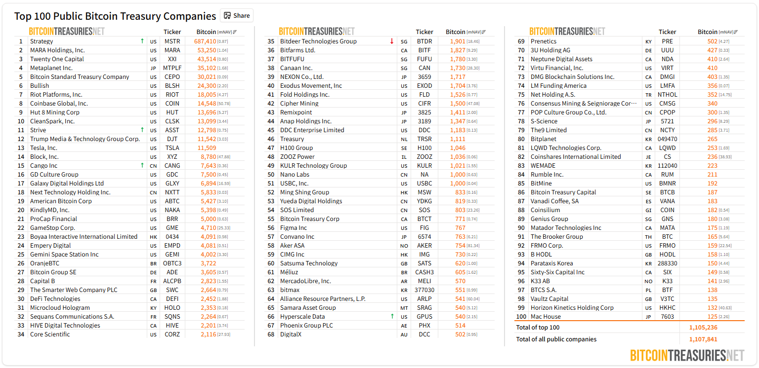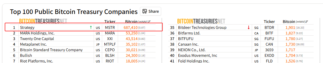 数据来源:BitcoinTreasuries