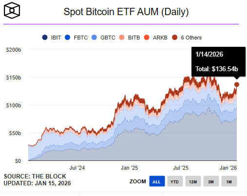 截至目前,在比特币现货ETF在经过两年的发展后,管理的资金规模早已突破千亿美元!仅仅是美国通过的11只比特币现货ETF,总资产管理规模就超过了1,360亿美元。