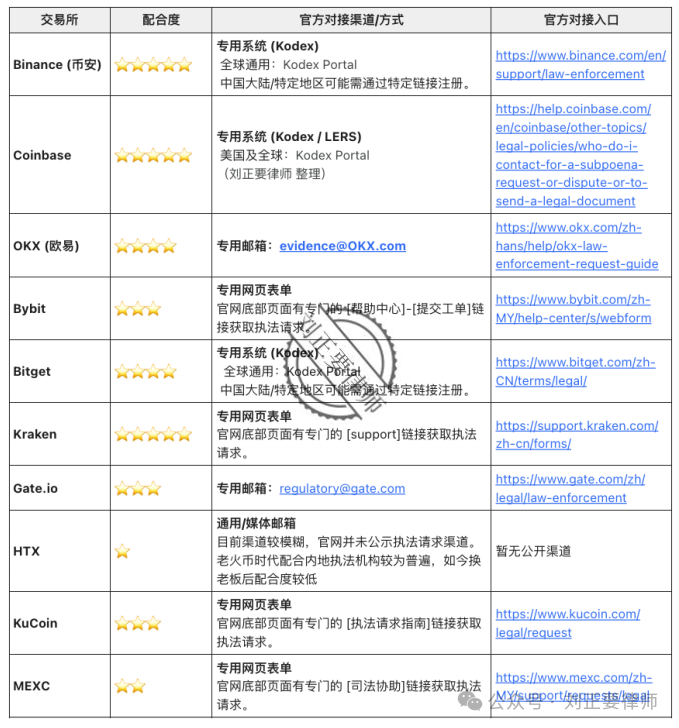在Web3 刑辩律师的角度,也需要了解一下各大交易所的调证方式,以便更好的审核在案证据。
