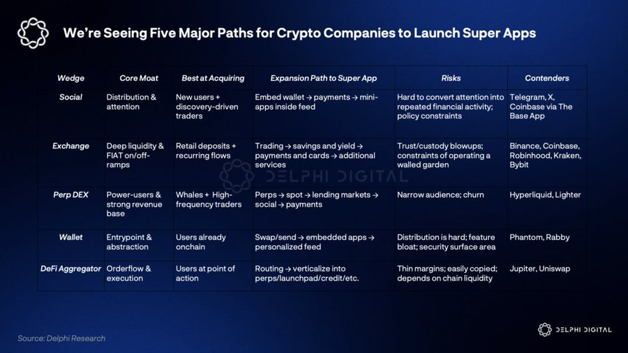 Coinbase 拥有 Base 作为操作系统,Base App 作为用户界面,USDC 收入构成底层现金流,并通过 Deribit 布局衍生品。Robinhood 的 Gold 会员数同比增长 77%,逐渐成为其核心留存引擎。Binance 早已达到超级应用规模,用户超过 2.7 亿,支付量达 2500 亿美元。当分发成本趋近于零,价值将集中于“掌握用户”的平台。2026 年,头部效应将开始明显拉开。
