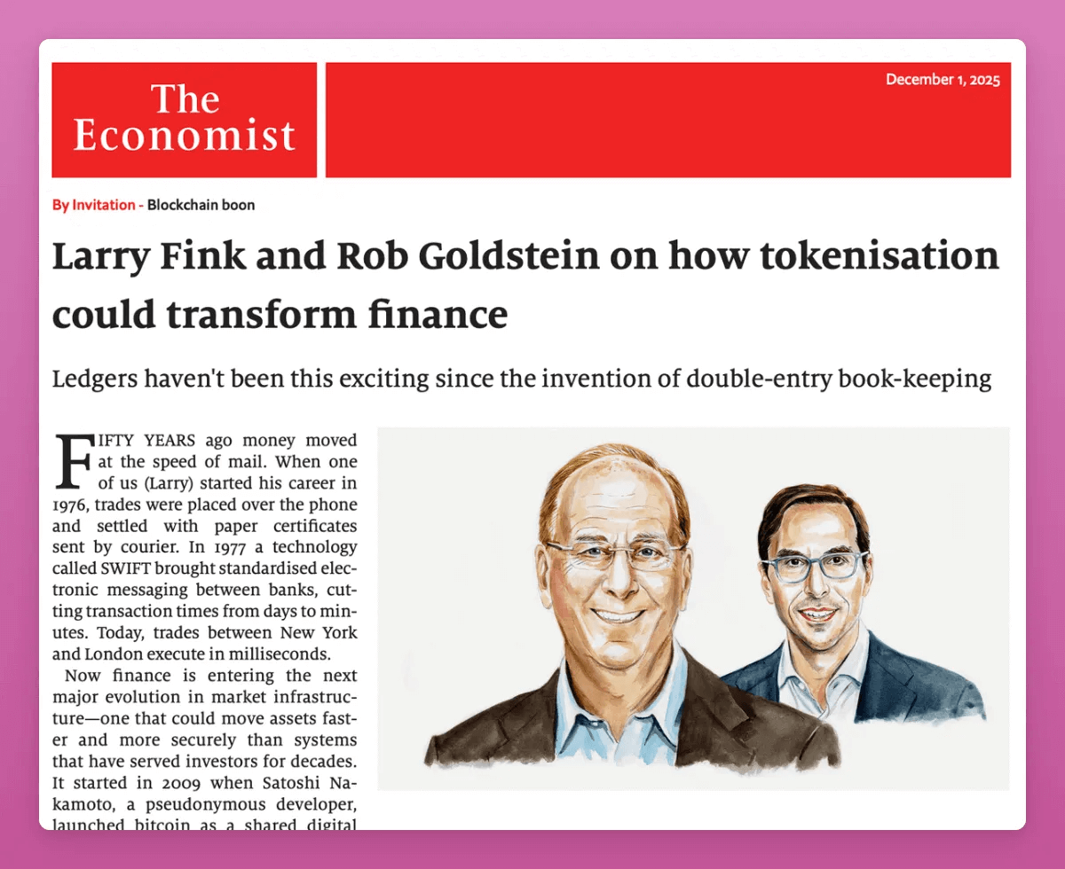 估值预测: 波士顿咨询(BCG)预测到 2030 年代将达到 16-30 万亿美元。贝莱德(BlackRock)的拉里·芬克认为“每一种资产都将被Token化”。