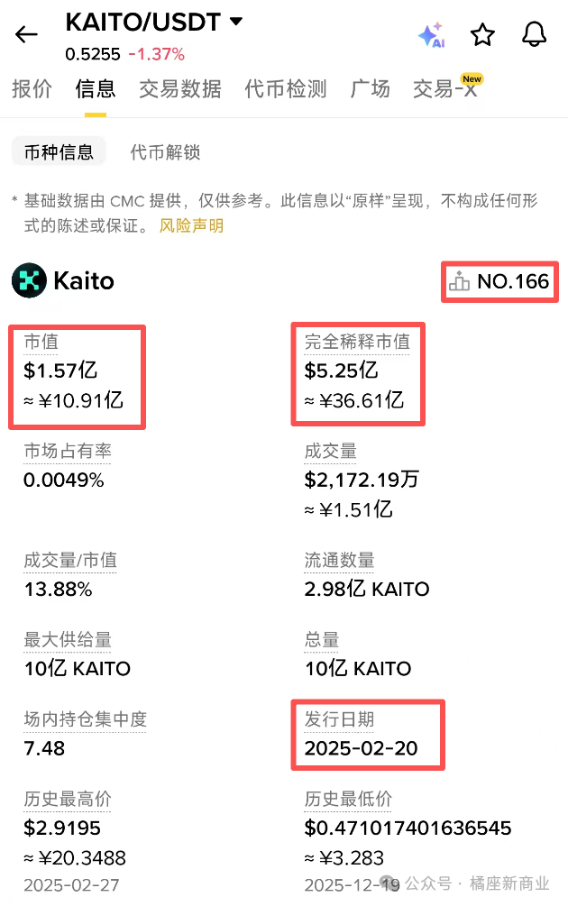 再看看kaito的市值,到现在居然还有5亿美金,排名166位。