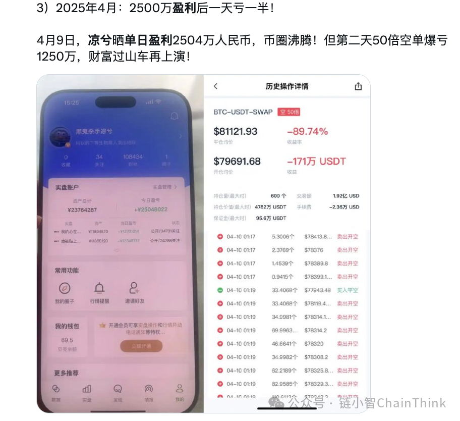 可惜账号被封,转头扎进币圈社交平台,靠高频晒合约、爆私密料的骚操作,把散户拿捏得死死的,死忠粉蹭蹭涨。