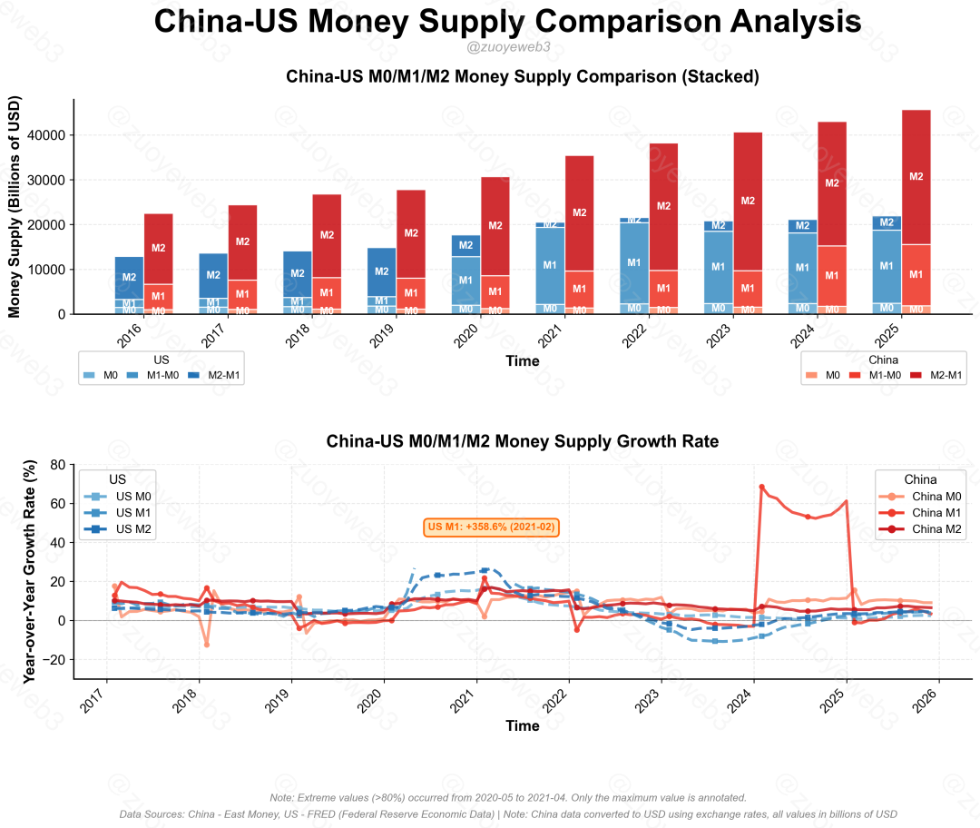 针对性回答这两个问题,目前 USDC 发行量 750 亿美元,购入 400 亿美元国债,Tether 发行量 1800 亿美元,购入 1300 亿美元国债,仅计算基于美债发行的稳定币达 1700 亿美元,占据美国 M0/M1/M2 的 3%/0.8%/0.7%。