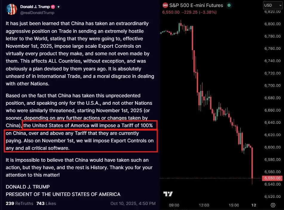 10月10日 - 特朗普威胁对华征收100%关税