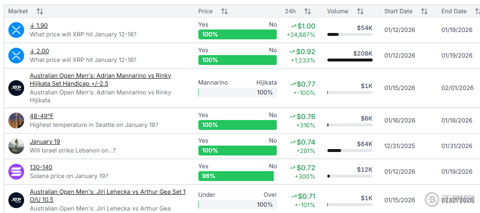 Polymarket平台当前交易数据,来源Polymarket