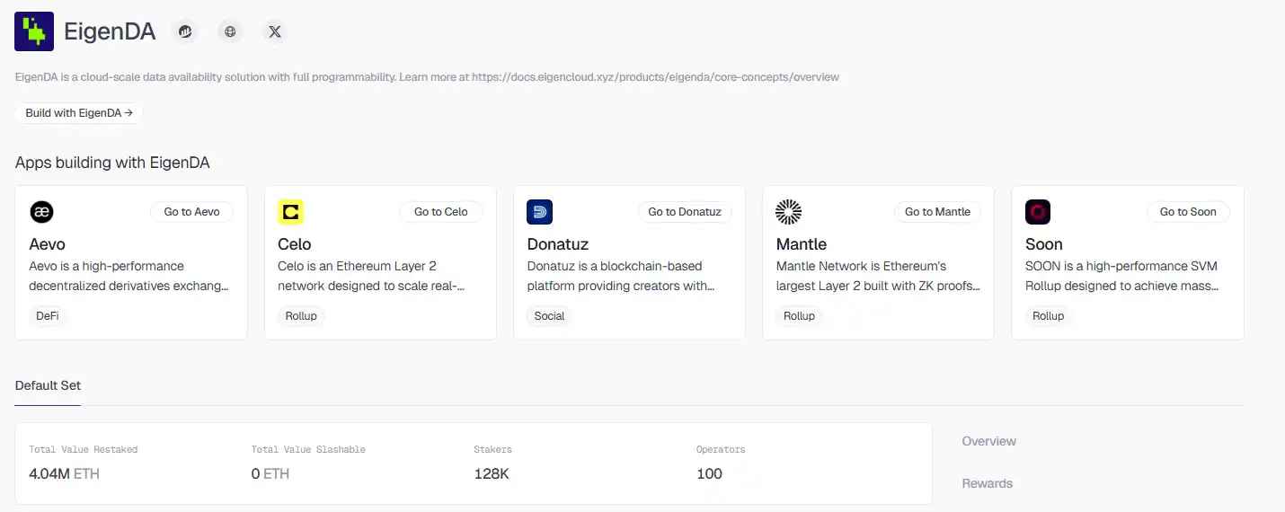 它最大的优势在于直接租用了以太坊现有的庞大信用体系。通过 EigenCloud,那些已经在以太坊上质押了 ETH 的用户,可以选择把这些资产再质押资产给 EigenDA 的验证者。这意味着,如果有人想攻击 EigenDA,其实质上是在挑战价值数百亿美元的 ETH 安全屏障。对于 Rollup 开发者来说,这省去了自行建设安全网络的巨额成本,直接实现了“拎包入住”般的安全性。