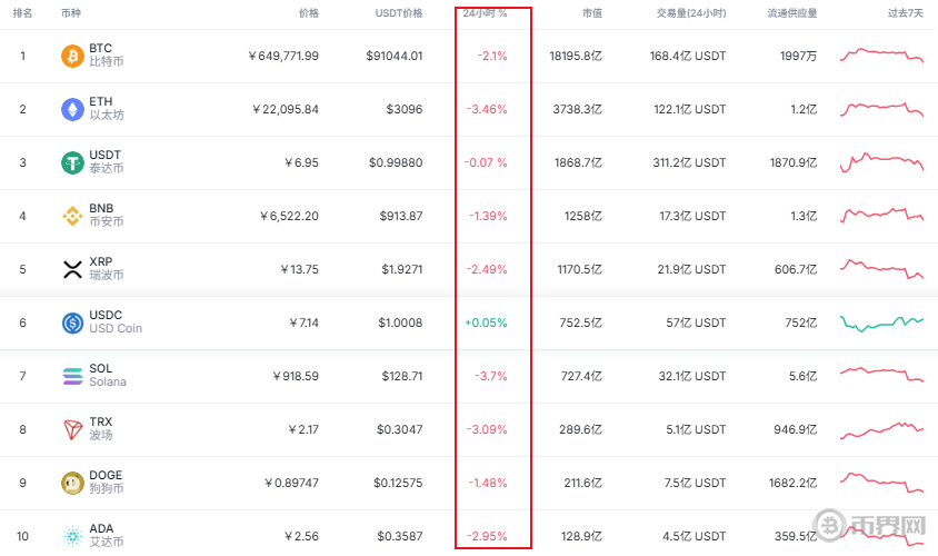与黄金的强势形成残酷对比的是,加密货币市场在特朗普关税言论冲击下全面走低。比特币跌破92000美元关键支撑位,以太坊、Solana等主流加密货币跌幅更深。