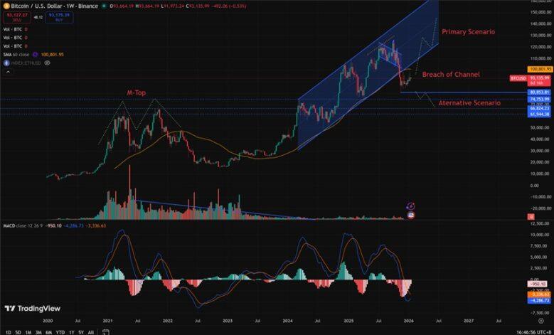 当然,我们无法完全排除当前走势演变为 2022 年式熊市延续的可能性。但必须注意的是,80,850-62,000 美元区间曾经历过大规模盘整与筹码交换。