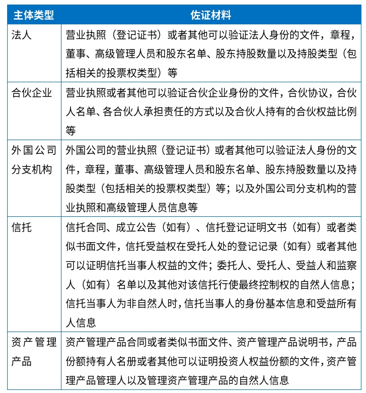 就识别佐证材料而言,可根据不同主体类型进行区分,包括: