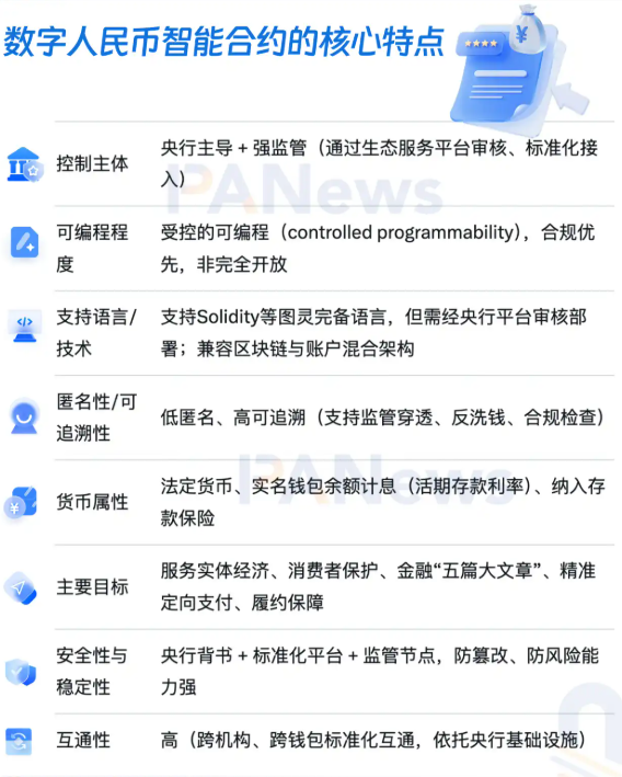 与微信和支付宝本质上作为支付工具存储传统货币不同,数字人民币本身就是一种货币,使用时如同交付电子现金。同时,数字人民币也并非建立在区块链上,而是基于一个全新设计的账户体系,但基于智能合约的可编程性是核心竞争优势,使其能够嵌入更复杂的履约与监管场景。