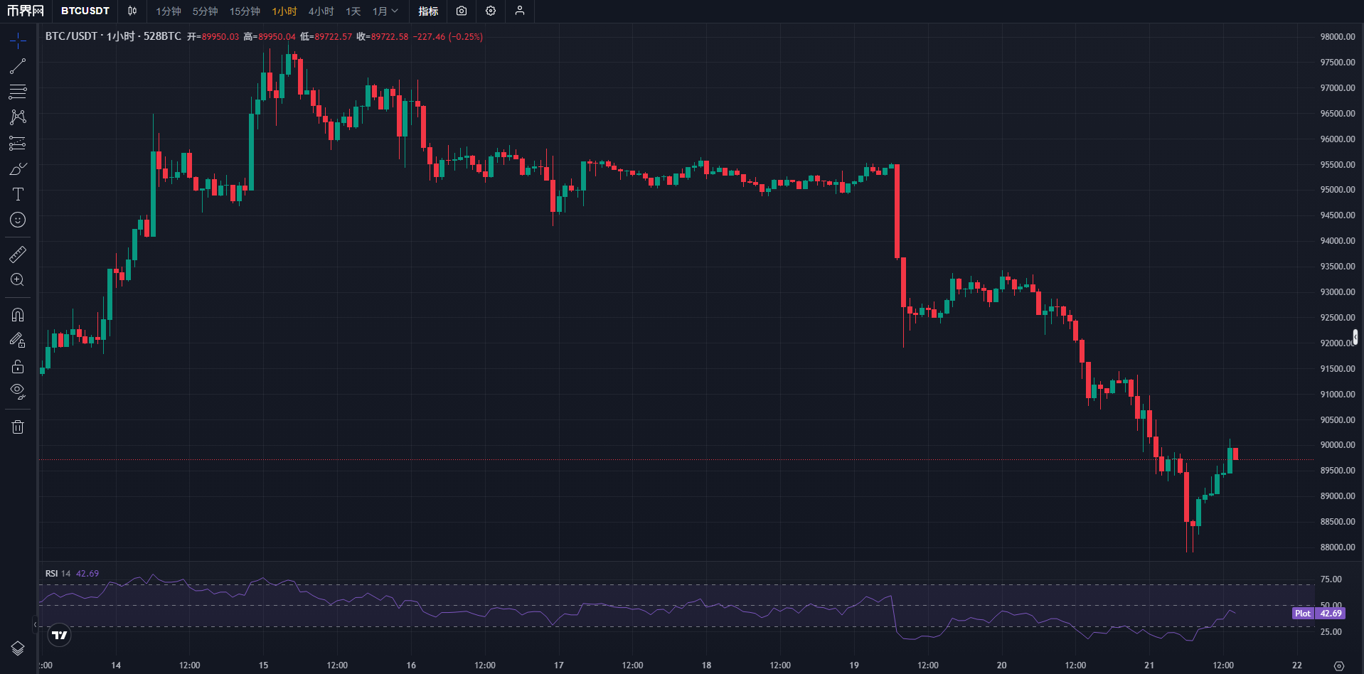 更糟糕的是,昨晚美股开盘暴跌的冲击波再次影响了比特币市场,加上比特币现货ETF的机构资金的迅速撤资,导致比特币再次暴跌。在撰写本文时,比特币的价格已跌破90,000美元的关键位置,且在最近24小时内,比特币价格最低跌至87,900美元。