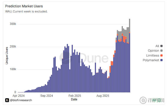 市场参与结构也发生显著变化。预测市场不再局限于加密原生用户,传统金融背景的投资者比例明显上升。平台差异化竞争与用户增长策略共同做大了市场蛋糕,其中Polymarket凭借先发优势和丰富的长尾事件吸引全球用户。