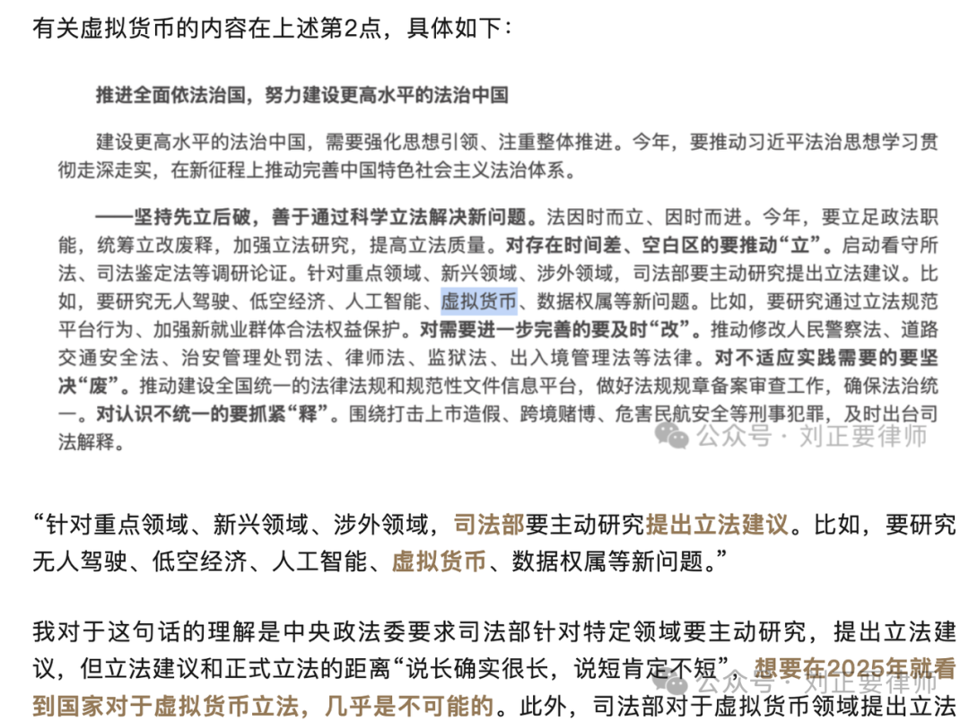 2025年1月份的文章,详见:《2025年中国会对虚拟货币立法吗?解读中央政法委会议》