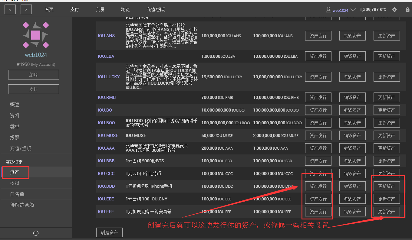 <6>创建完后,可以发行资产,修改资产