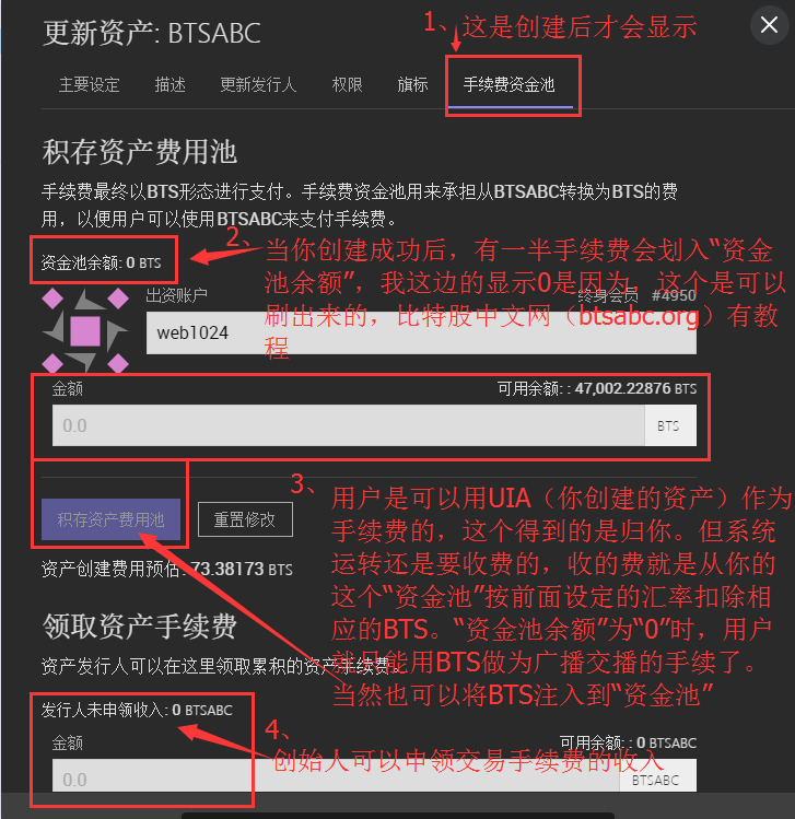 资金池的用意在于提供一个方便的方式, 让用户无须考虑兑换成BTS的细节. 任何人都可以资助这个资金池, 但只有发行者可以指定兑换率. 如果这个资产是有BTS抵押发行的, 这个兑换率就会自动被设定为平仓价格.
