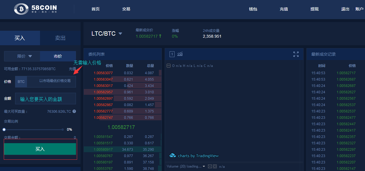 所谓的市价交易就是指不设定买入价格,按照当时的市场价格买入或卖出,只需输入想买入的总金额或卖出的总量即可。