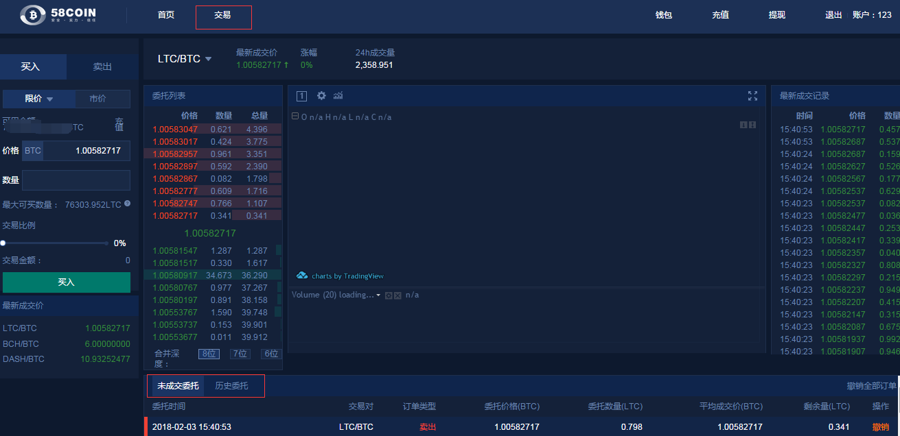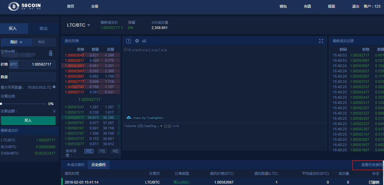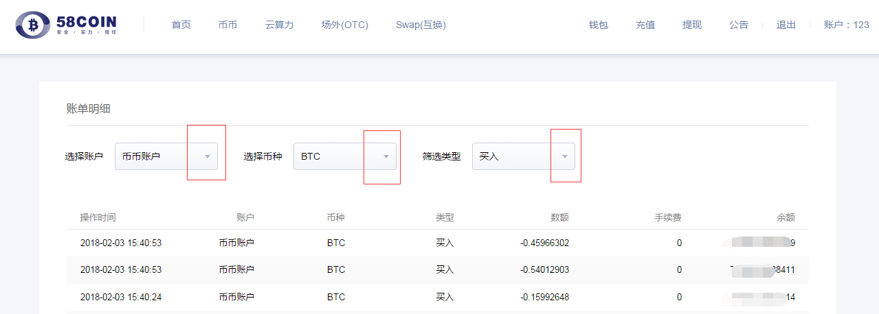 登陆www.58coin.com ,点击币币交易/云算力、交易、交易记录查询挂单及成交情况。如下图所示: