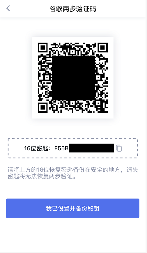 备份两步验证16位密匙主要应对装有两步验证的手机丢失造成的不便或损失。