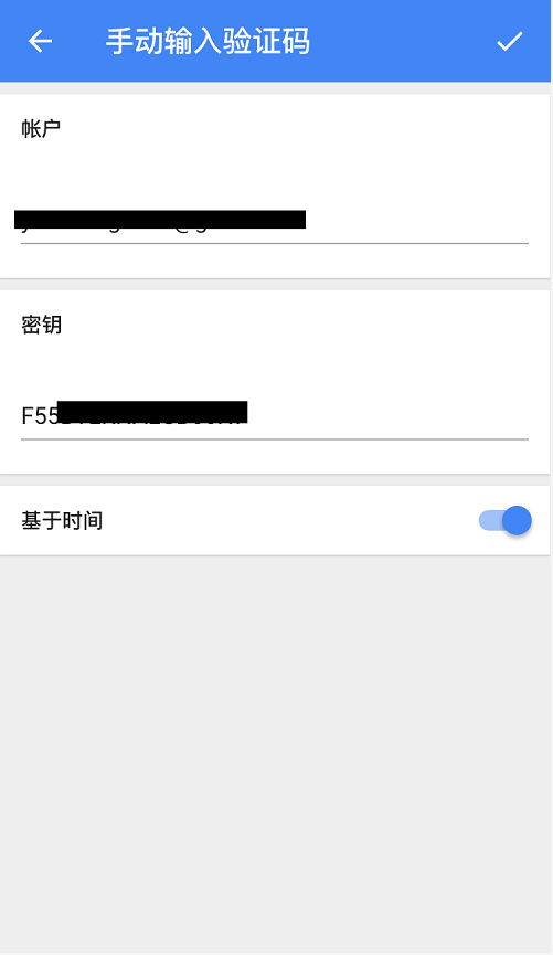 如果您选择手动输入验证码的方式 ,填写Cobo为账户名称,复制第一步生成的16位密匙,粘贴在置顶位置,点击右上角完成