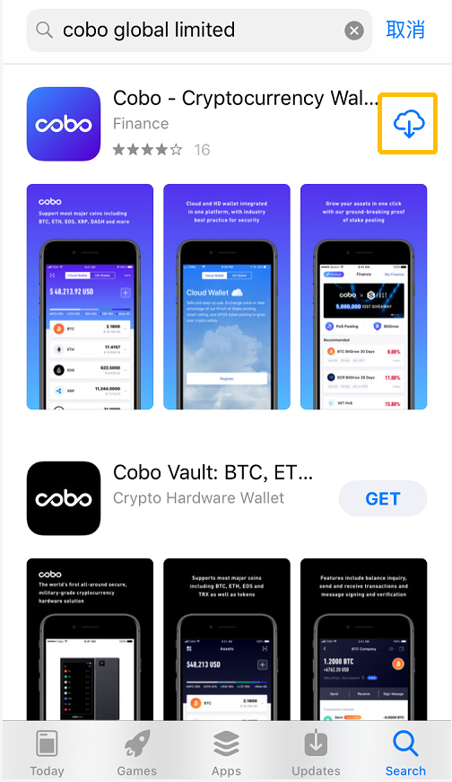 5. 使用以上任意一种方式获得的海外账号登录App Store,搜索「Cobo」(不区分大小写);