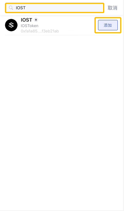 在搜索栏中输入IOST,点击添加;