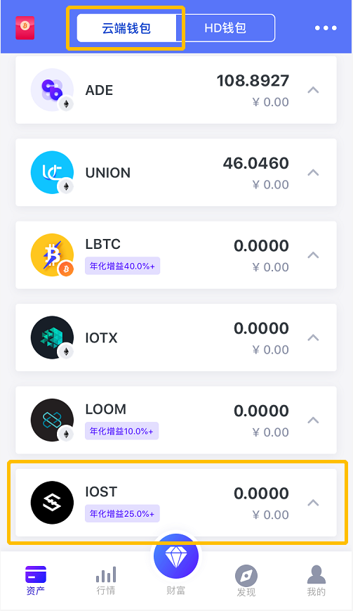 返回【云端钱包】主页,可以看到IOST已添加。