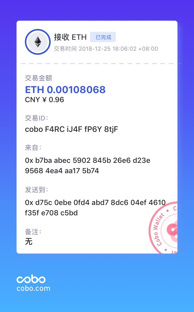 从Cobo以外的地址发来的转账,只有在足够的数据块确认后才能完成。