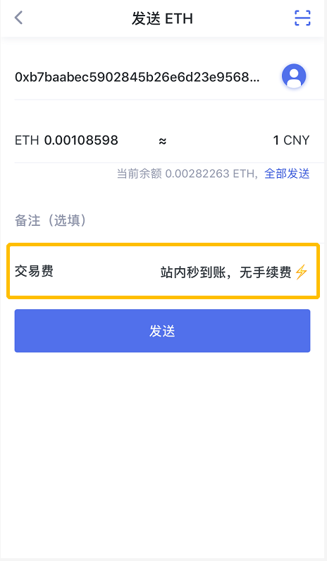 1. (以云端钱包ETH为例)进入云端钱包——点击进入ETH币种页面——点击【发送】;