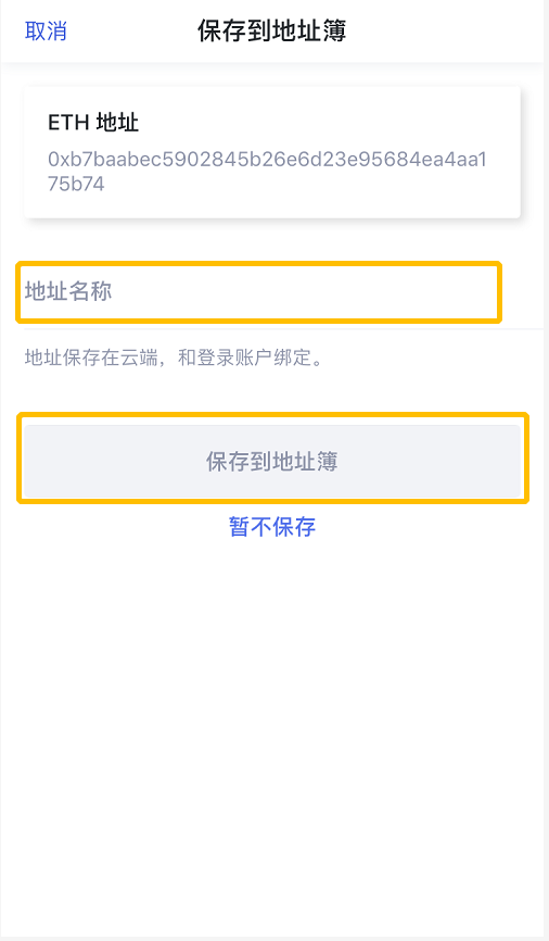 7. 您也可以将此地址保存到地址簿,起一个名字,方便以后转账哦!