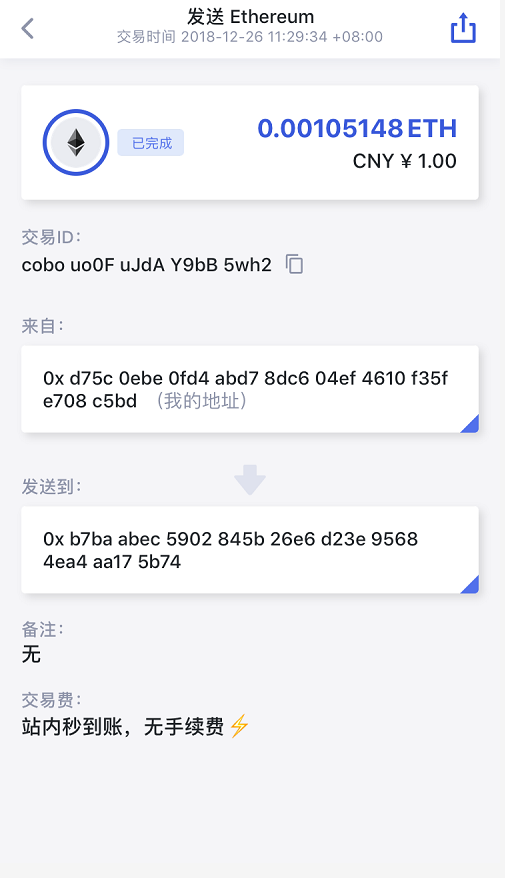 a. Cobo云端账户之间转账不收取交易费用,秒级到账;