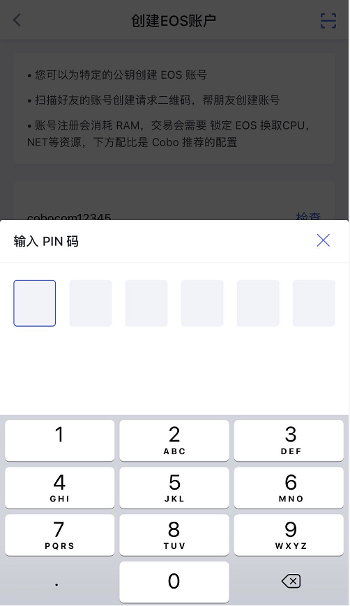 在Cobo钱包生成EOS公钥二维码;