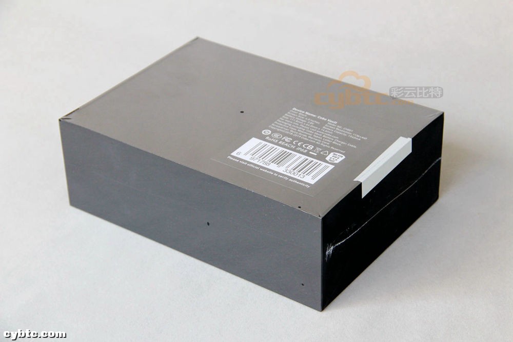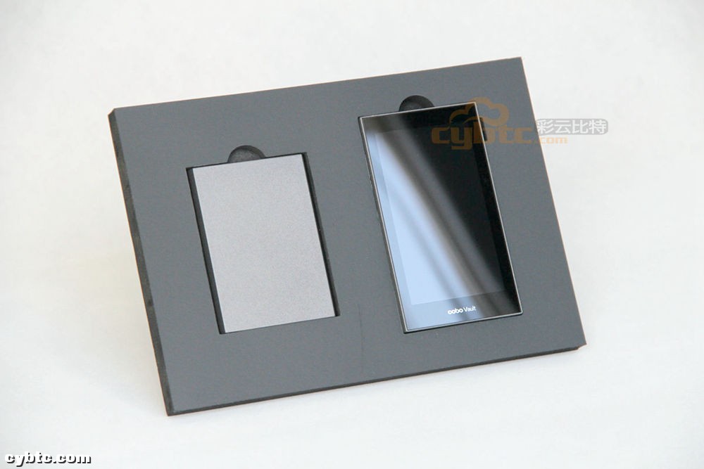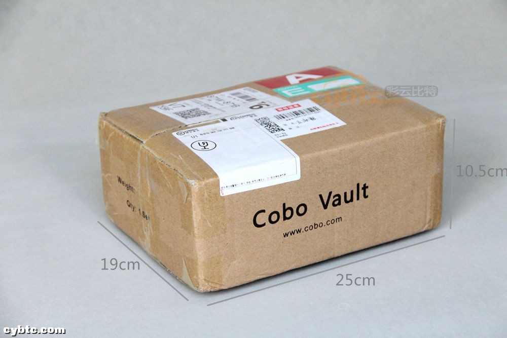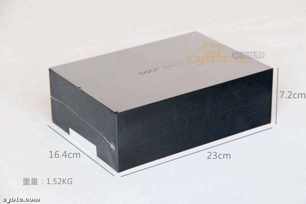 解开这一层气泡膜,热缩膜封装外包装盒,盒子采用礼盒扣盖设计,重量1.5公斤,正面仅印有Cobo Vault的标识▽