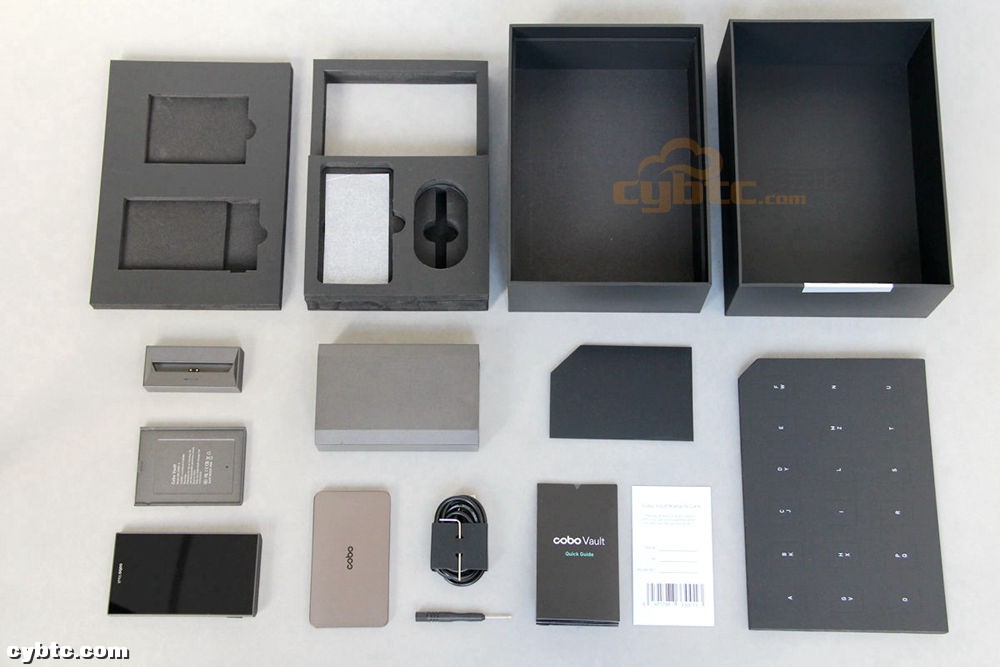 Cobo金库的硬件冷钱包主体和电池已经达到了IP68级防水和IK10级防摔军标级防护外,但厂家还设计了一个专门用于保护主体和电池的金属保护壳▽