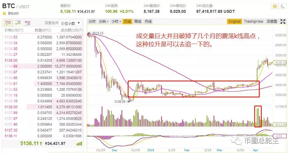 炒币的周期性每个币友都是不一样的,有人可能需要进场就等几天,有人可能就是做第二天,有人可能就是做几小时就出仓了,所以学习今天的内容,拉升追高法,需要首先确定你的炒作周期,如果你的炒作周期是1h,那么就不要看天的,如果你的炒作周期是1d,那么就不要去看4h的或者其他的,这是我们必须要确定的追高条件。