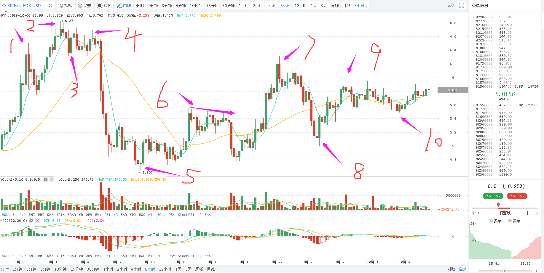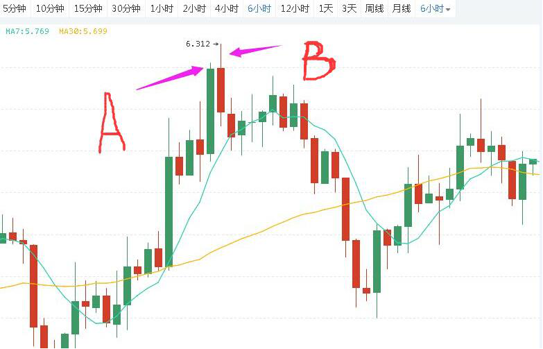 显示的是这6个小时的价格体现。开盘价是6474.1,最高价格是:6474.2 ,最低价格是:6220.9 收盘价是:6291.0