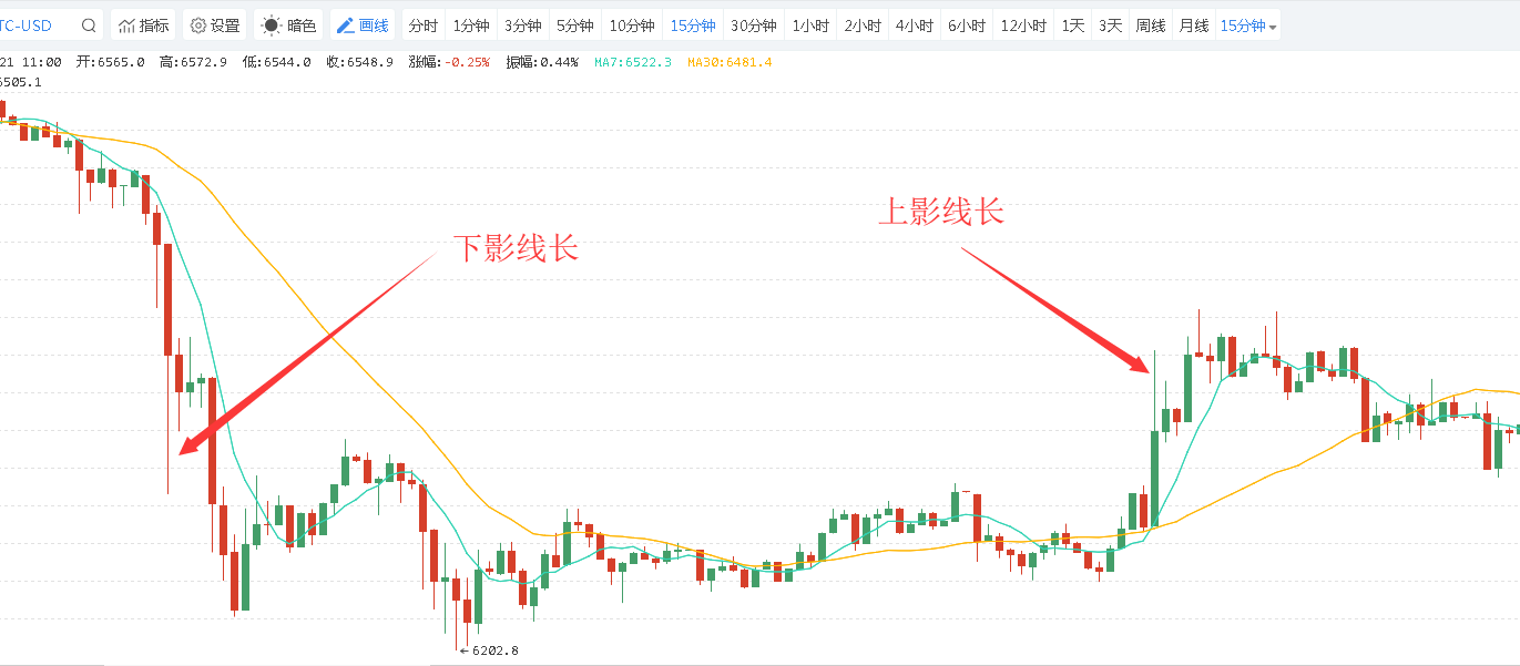 什么叫做上影线长?这里可以看它占实体的比例。。。