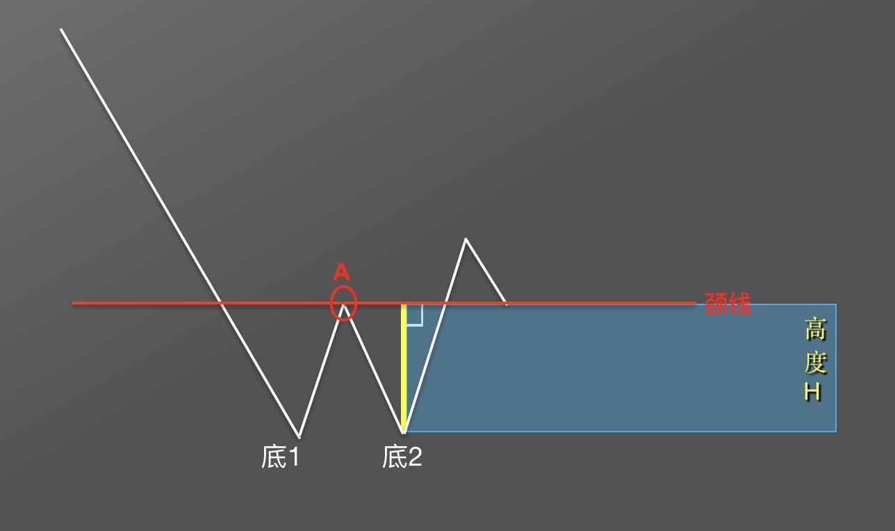 前面我们学习了如果通过W底形态找到买入机会,下面我们学习如何通过W底形态,预测未来币价上涨高度。找到较佳的卖出机会。