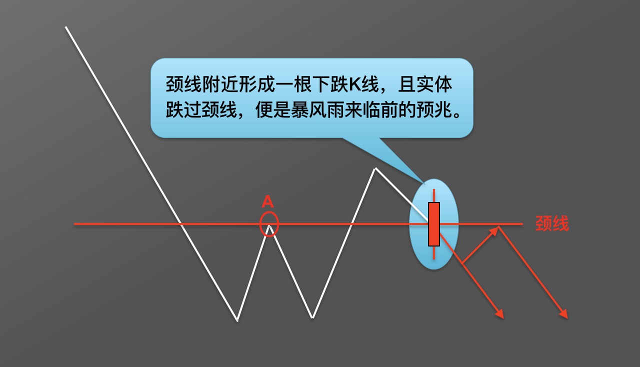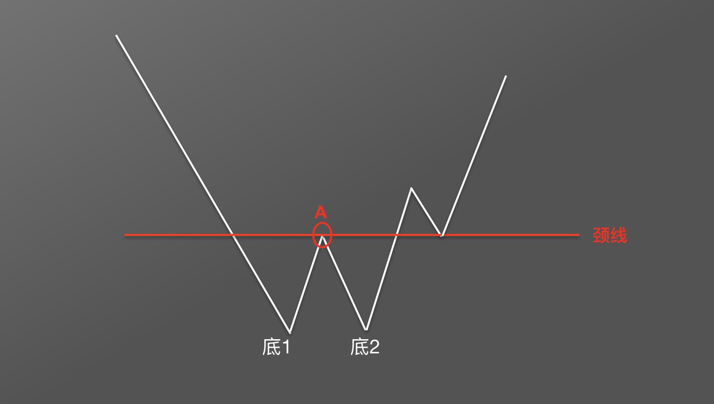 首先找到两底之间的高点A,穿过A点画一条水平直线,称为颈线。