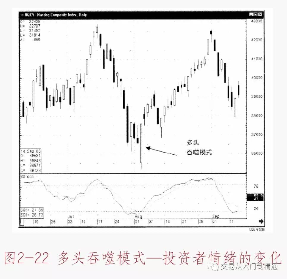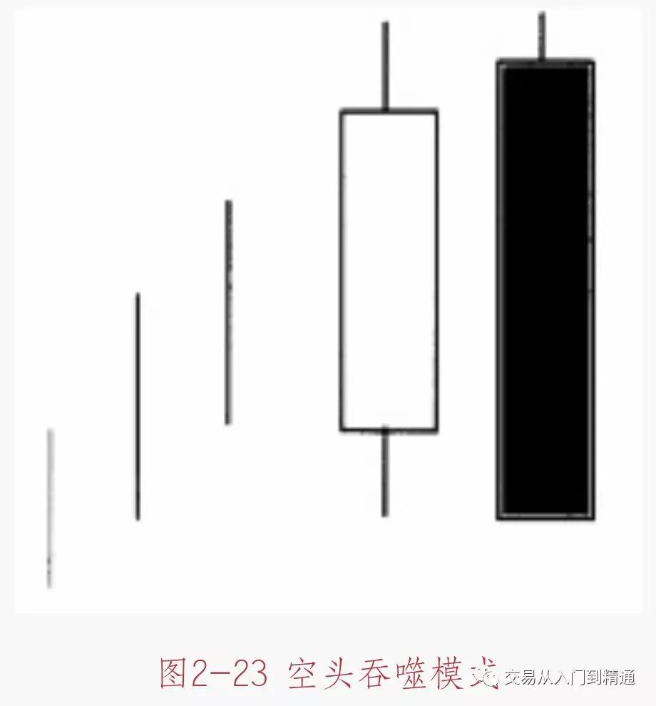 ①必须是大的实体才能吞噬小的实体。前一天的市场状况表明其趋势的力量已经很弱,而第二天大的实体表明新的趋势的力量很强。