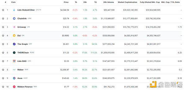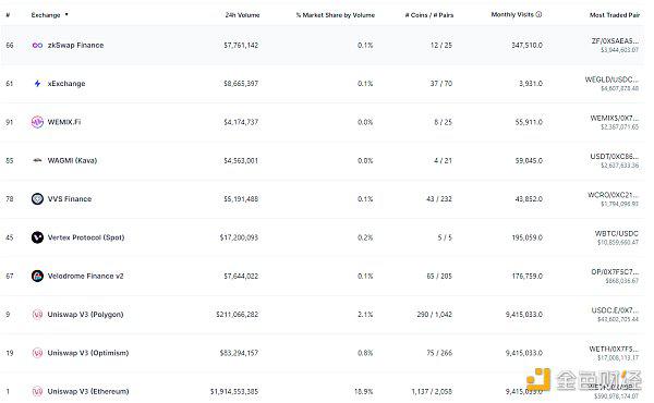 过去24小时去中心化交易所的交易量 数据来源:coingecko