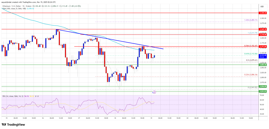 以太坊价格未能守住 3050 美元上方,并进行了测试2950美元。以太坊目前正试图反弹,但在3150美元附近面临阻力。