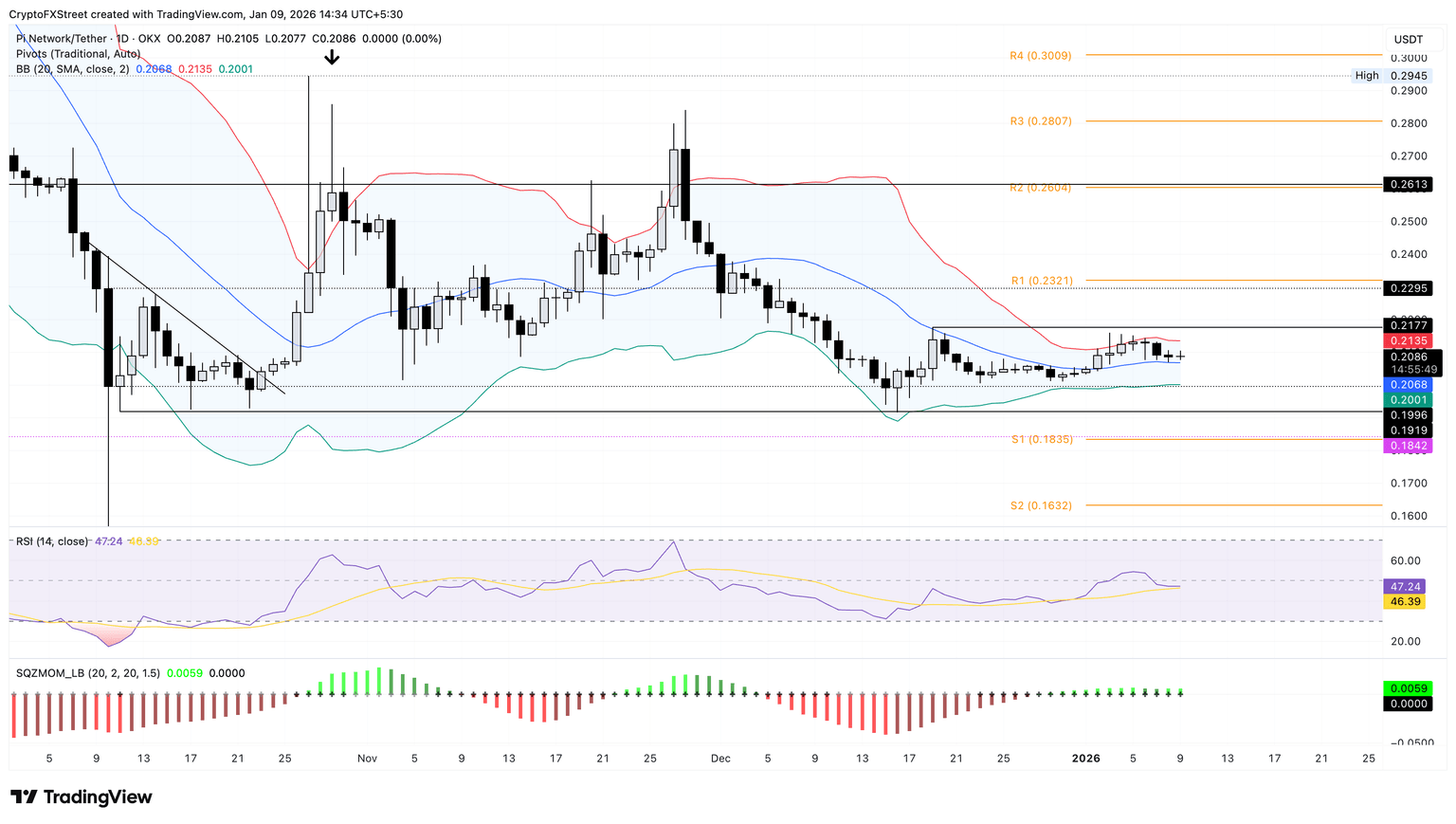 如果 PI 跌破 0.2068 美元,可能会威胁到 0.2000 美元的心理支撑位,并有可能将跌势扩大到 0.1835 美元的 S1 枢轴点。