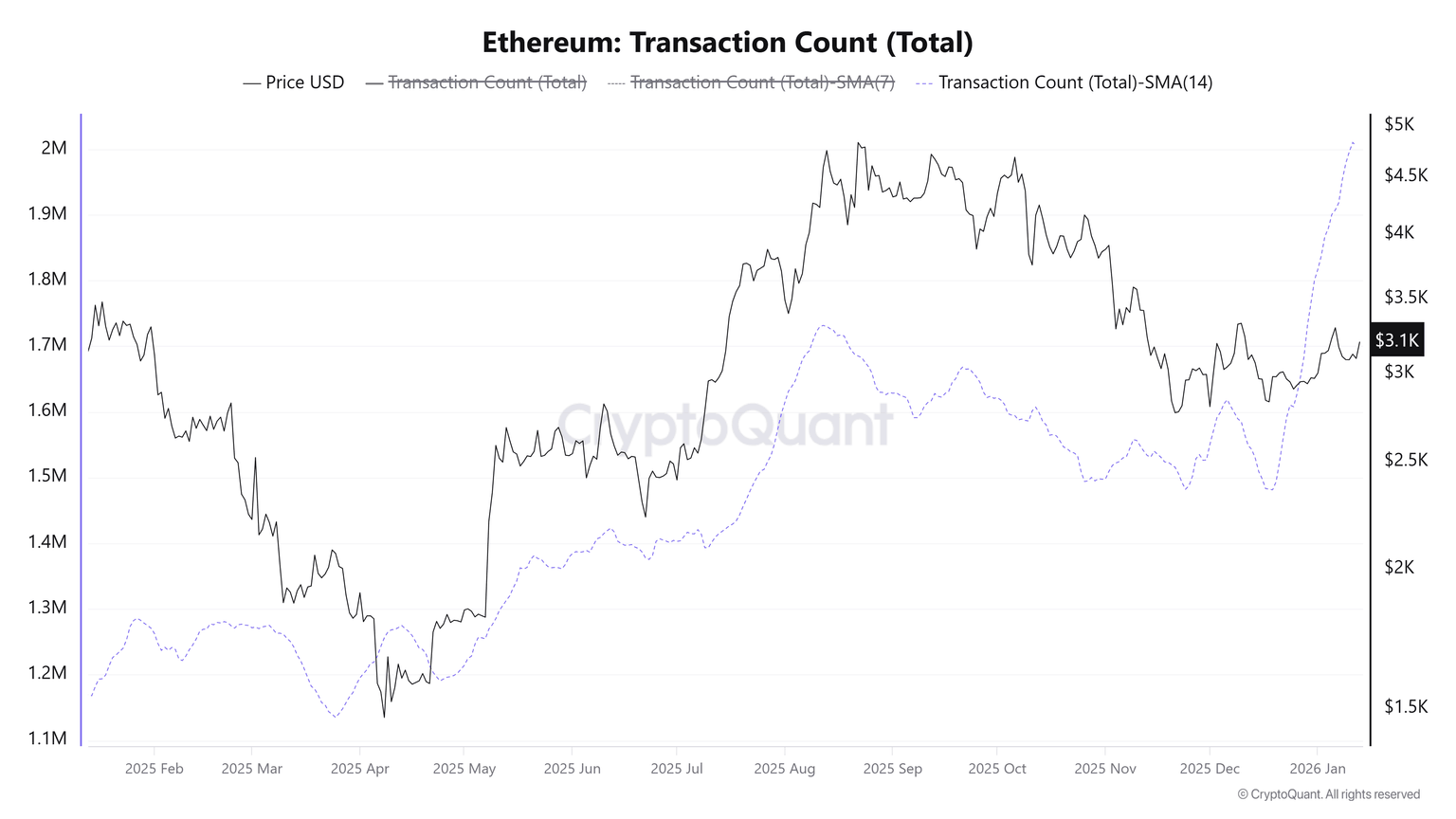 尽管价格依然低迷,但以太坊的网络活动持续飙升。