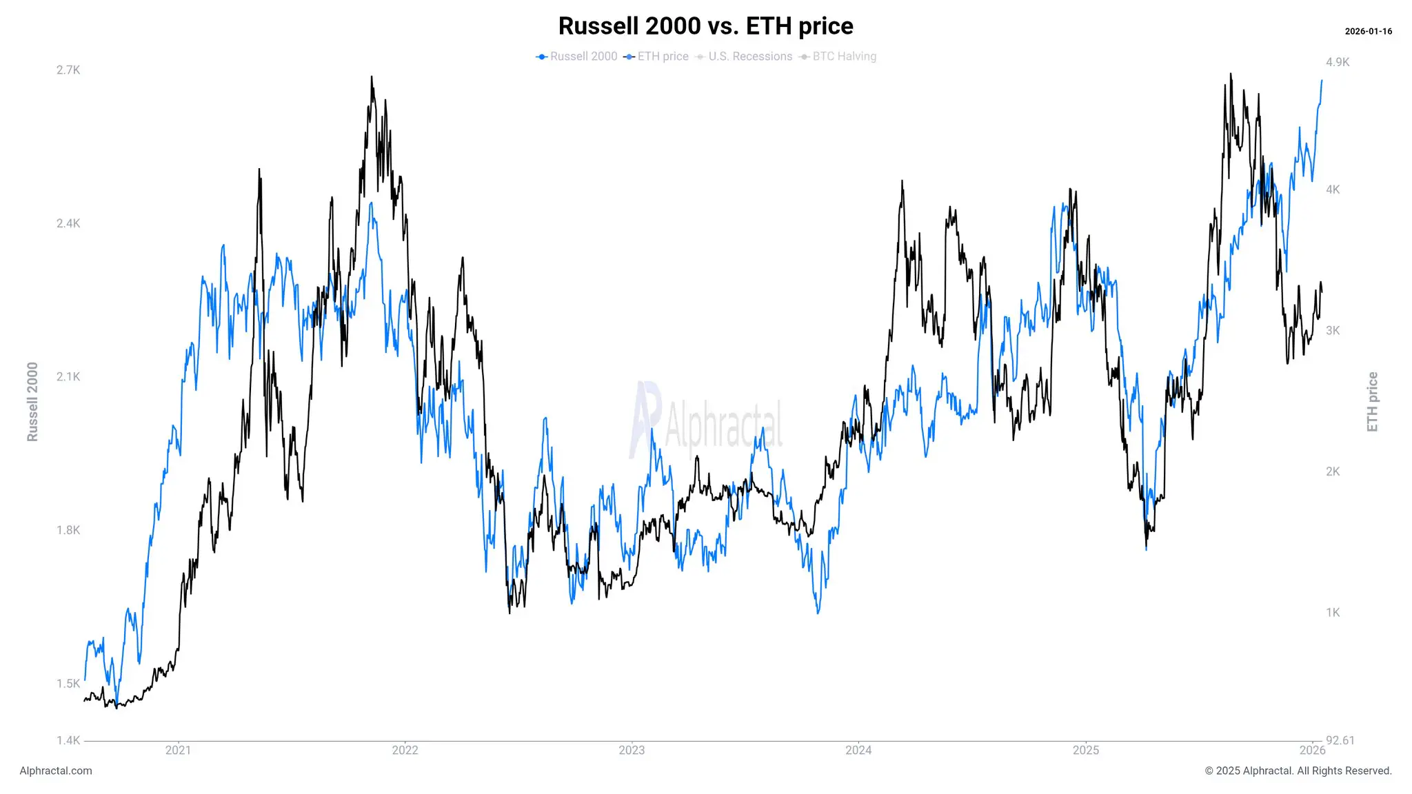以太坊和美国小盘股不再同步波动,这引发了人们对宏观经济转型时期传统风险指标可靠性的新疑问。