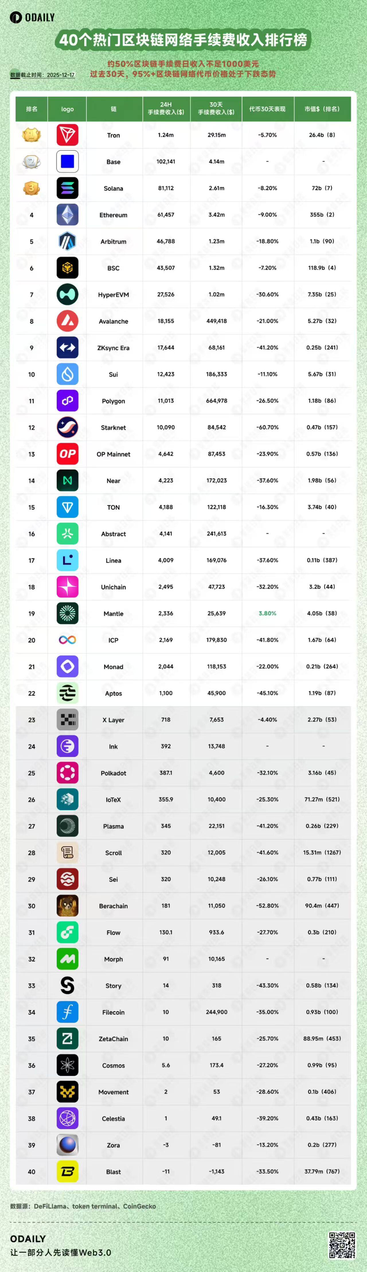 Odaily星球日报 在 12 月中旬曾统计过 40 个主流区块链的手续费收入排行,Starknet 排进了前 15 名,日手续费收入超越 Monad、TON 等区块链。