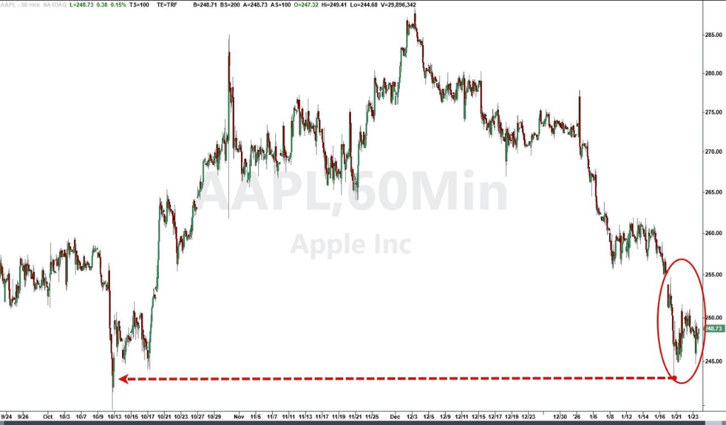 (苹果股价跌至去年10月中旬水平)